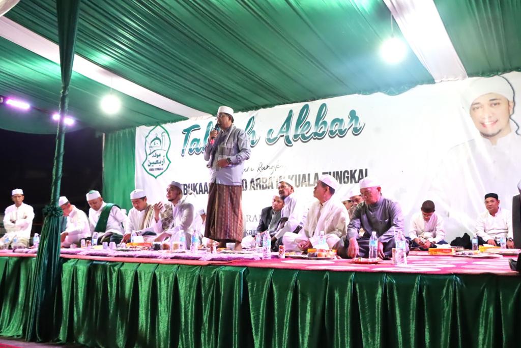 KABARTUNGKAL.COM . Bupati Tanjab Barat Drs. H. Anwar Sadat M. Ag Hadiri Tabligh Akbar dalam rangka Pembukaan Maulid Arbain Kuala Tungkal, Senin Malam(26/09/2022).