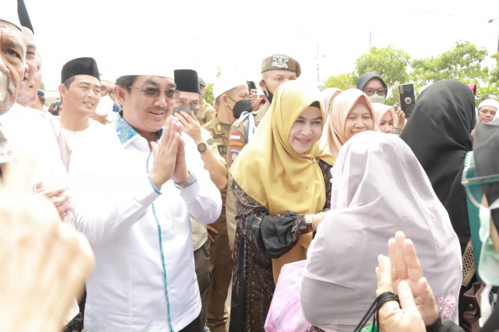 KABARTUNGKAL.COM . Bupati Kabupaten Tanjung Jabung Barat Drs.H.Anwar Sadat,M.Ag di dampingi Ketua TP-PKK Hj. Fadhillah Sadat Menyambut Kepulangan Jamaah Haji Kabupaten Tanjung Jabung Barat bertempat di Gedung Serba Guna, Minggu(07/08).