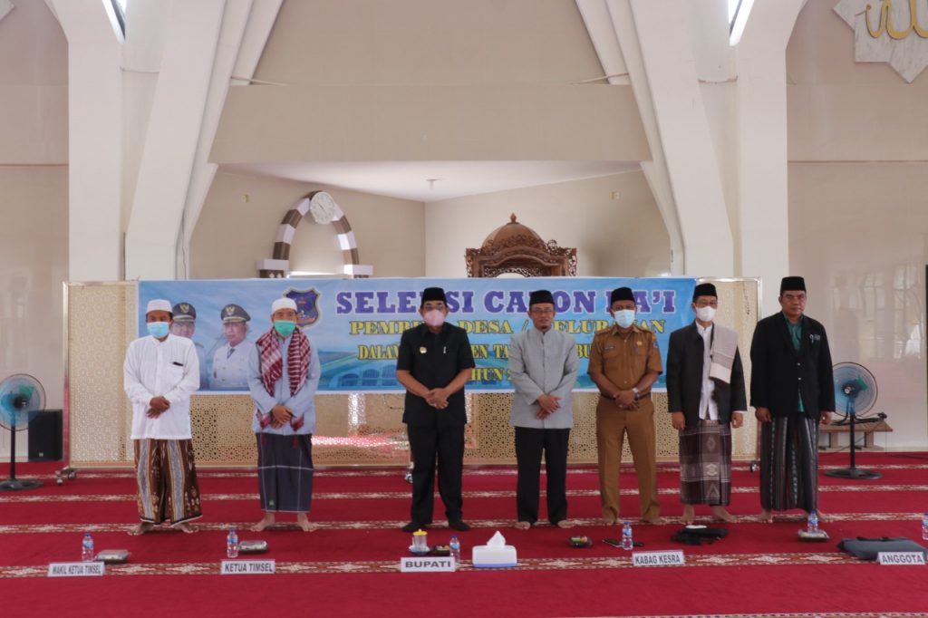 KABARTUNGAKAL.COM. Bupati Tanjung Jabung Barat Drs. H. Anwar Sadat, M. Ag menghadiri langsung seleksi tes Calon Da’i Pembina Desa /Kelurahan Dalam Kabupaten Tanjung Jabung Barat bertempat di Masjid Syekh Usman Kuala Tungkal, Senin (13/12/21)
