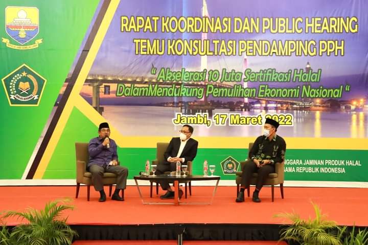 Rapat yang dibuka oleh Gubernur Provinsi Jambi tersebut juga turut dihadiri oleh Kepala BPJPH Kementerian Agama RI, Bupati/walikota se-provinsi Jambi/mewakili, Kepala OPD Provinsi Jambi, Pimpinan Ormas, Kepala Kantor Pimpinan Agama se-provinsi Jambi,