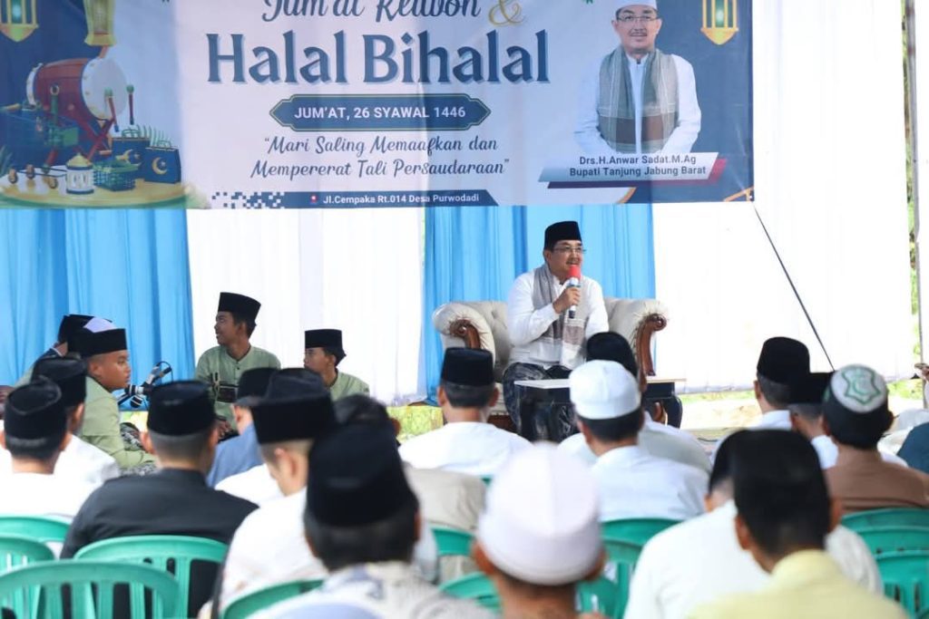 Dalam tausiahnya, Bupati menyampaikan bahwa halal bihalal bukan sekadar tradisi, tetapi merupakan momen penyucian hati untuk saling memaafkan, menghilangkan iri dan dengki, serta memperkuat semangat kebersamaan dalam kehidupan bermasyarakat.