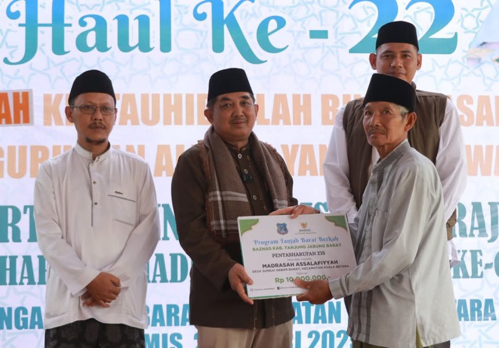 KABARTUNGKAL.COM. Kuala Betara – Bupati Tanjung Jabung Barat, Drs. Anwar Sadat, M.Ag, turut serta dalam rangkaian acara Haul ke-22 Pendiri Madrasah Assalafiyyah, Al Maghfurlah KH. Tauhidullah bin H. Hasan Rasyid, yang sekaligus dilaksanakan untuk memperingati Isra’ Mi’raj dan Harlah Madrasah Salafiyyah yang ke-62.