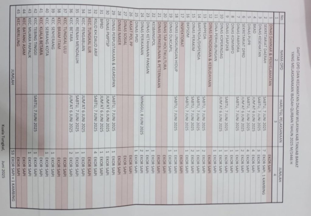 KABARTUNGKAL.COM. Hari Raya Idul Adha 2025/1446 H tidak lama lagi akan segera tiba, biasanya Pemerintah Kabupaten Tanjung Jabung Barat dan Kepala OPD setiap dinas tidak pernah luput dari prosesi pemotongan hewan qurban disetiap tahunnya.