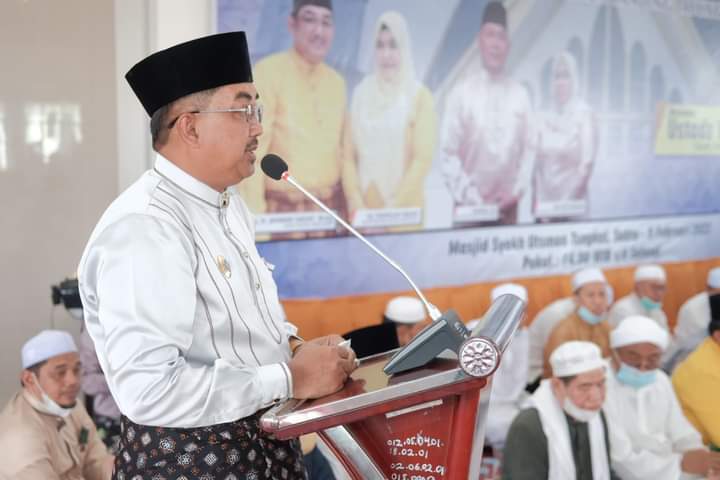 KABARTUNGKAL.COM – Peringati Isra’ Mi’raj Nabi Muhammad SAW 1443 H/ 2022 M Bupati Tanjung Jabung Barat, Drs. H. Anwar Sadat hadirkan ustad kondang asal Kalimantan Selatan, yakni Ustad Yannor Kelua.