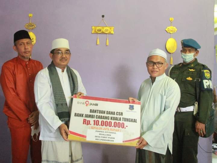 Selanjutnya bupati pun menyerahkan bantuan mushaf Al-Quran serta bantuan CSR Bank Jambi 5 juta secara simbolis untuk kebutuhan pembangunan masjid Al-Mutaqqin serta menyerahakan mushaf Al-Qura’an dan CSR Bank Jambi sebesar 10 juta ke ponpes Isti’dadul Mu’alimin. (Red)