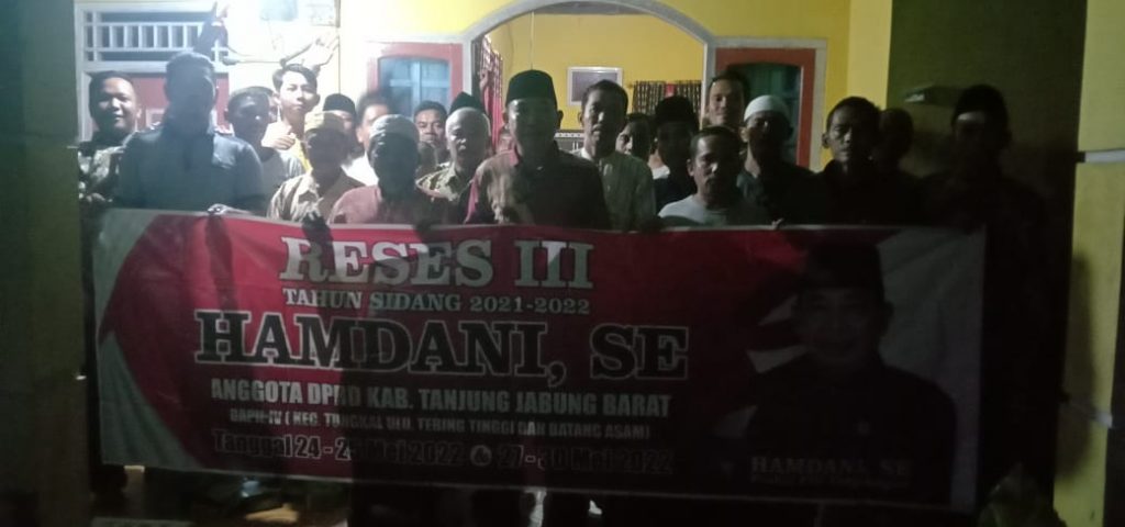 KABARTUNGKAL.COM. Tanjabbar – Anggota Dewan Perwakilan Rakyat Daerah (DPRD) Kabupaten Tanjung Jabung barat, Hamdani yang juga Merupakan salah satu Politisi Partai PDI perjuangan melakukan Reses Tahap III masa sidang 2021-2022 dengan masyarakat sosial Tayas kelurahan dusun kebun kecamatan batang asam kabupaten Tanjung Jabung barat.