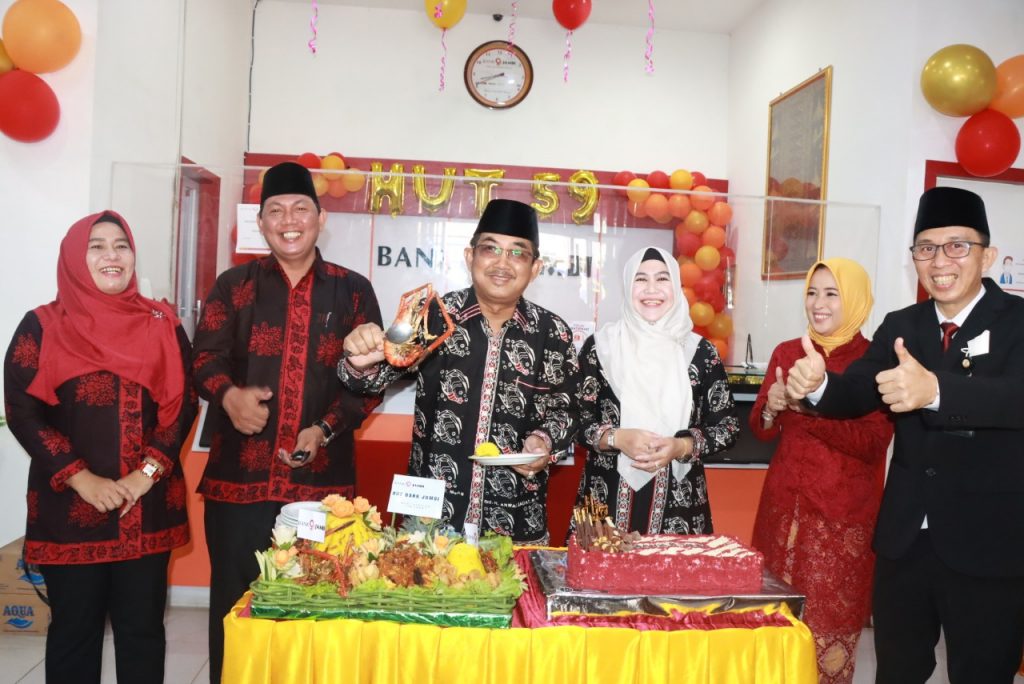 “Menyambut usia yang ke-59 di tahun 2022 ini patut kita syukuri, bahwa Bank Jambi tetap eksis dalam melayani jasa perbankan kepada masyarakat di tengah persaiangan perbankan yang semakin tajam”. Ujar Bupati