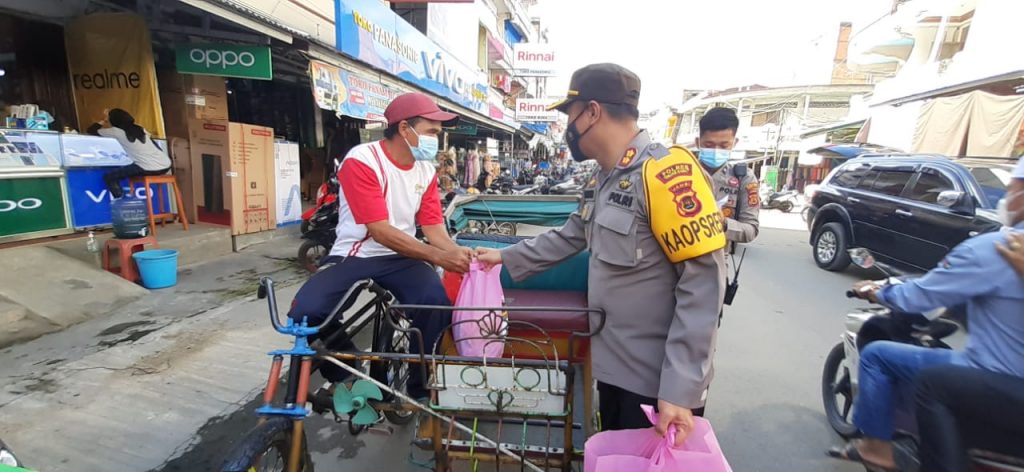“Kami membagiakan sembako ini sebagai bentuk kepedulian Polri kepada masyarakat Tanjab Barat yang terdampak covid-19” Ujar AKBP. MUHARMAN ARTA