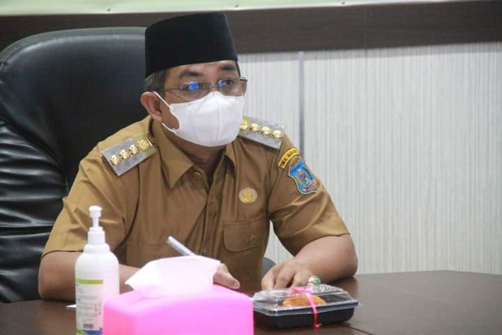 KABARTUNGKAL.COM. Bupati Tanjung Jabung Barat Drs. H. Anwar Sadat, M. Ag didampingi Sekretaris Daerah, Kabag Tata Pemerintahan, dan Kepala BPKAD, mengikuti rakornas terkait Vaksinasi yang dipimpin langsung oleh Presiden Indonesia, Joko Widodo. Senin (25/10).