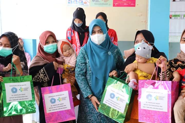 KABARTUNGKAL.COM . Ketua Tim Penggerak PKK Kabupaten Tanjab Barat Ummi Hj. Fadhilah Sadat melakukan kunjungan dalam rangka pembinaan Posyandu Cempaka II Desa Pematang Lumut, Kecamatan Betara dan PAUD Cempedak Emas,Kamis (17/3/22).
