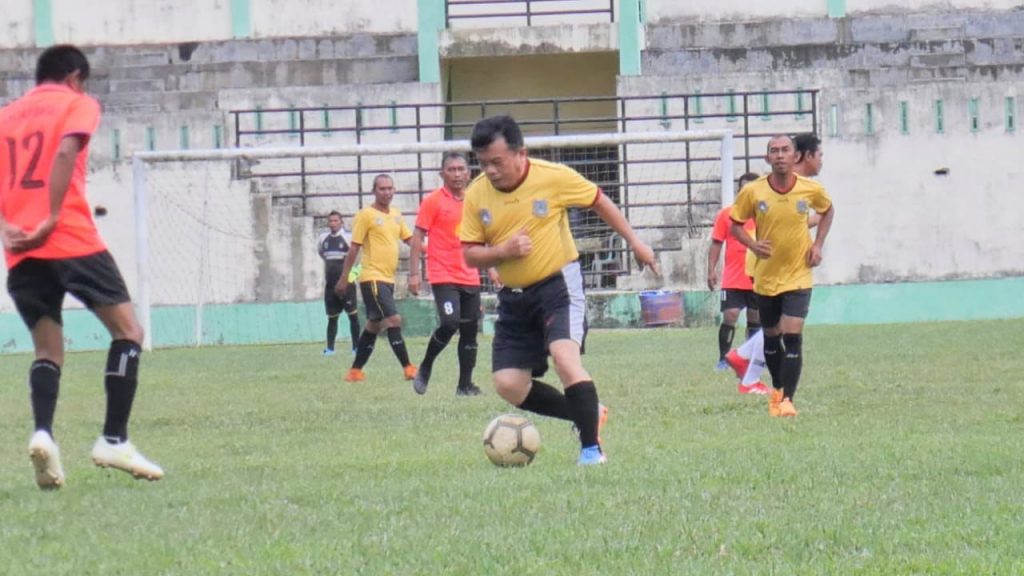 KABARTUNGKAL.COM. Bupati Anwar Sadat mendampingi Gubernur Jambi Al Haris dalam pertandingan sepakbola antara Tanjab Barat Old Star vs Gubernur Jambi Old Star yang terdiri dari Bupati Batanghari Fadhil Arief, Ketua KONI, Camat Bram Itam dan beberapa pemain lainnya, minggu (3/9).