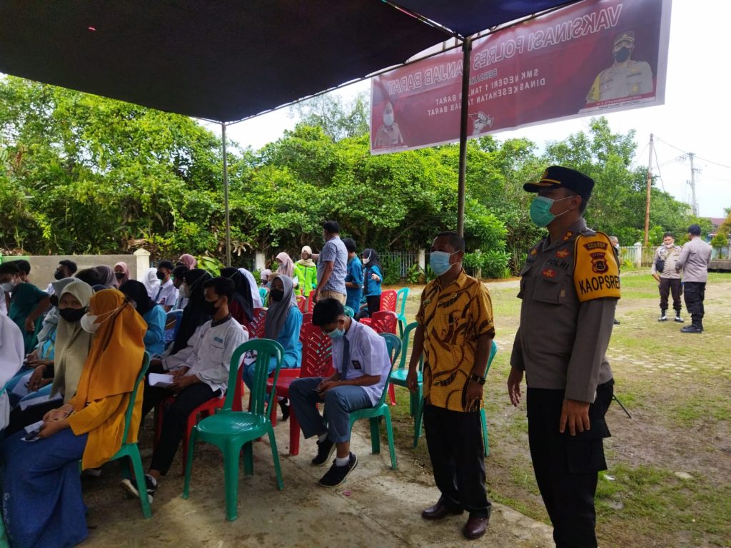 “Kami jajaran Polres Tanjab Barat, akan selalu men-support, membantu dan mendukung semua pelaksanaan vaksinasi yang telah di laksanakan pihak sekolah. Mudah-mudahan murid-murud bisa di vaksin, guru-gurunya juga sehat, murid-muridnya sehat, sehingga proses belajar mengajar pun bisa berjalan dengan baik”. Ujar Kapolres