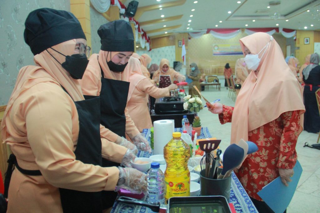 KABARTUNGKAL.COM . Masih dalam rangka memperingati HUT Dharma Wanita Persatuan ke – 22 tahun Tahun 2021, Mewakili Ketua TP PKK Ketua DWP Kab. Tanjung Jabung Barat Ir. Hj. Heny Purnamawati, M. Pd. I menghadiri sekaligus menjadi juri dalam lomba Membuat Kudapan dari Bahan Lokal untuk Mencegah Stunting. Selasa (16/11).