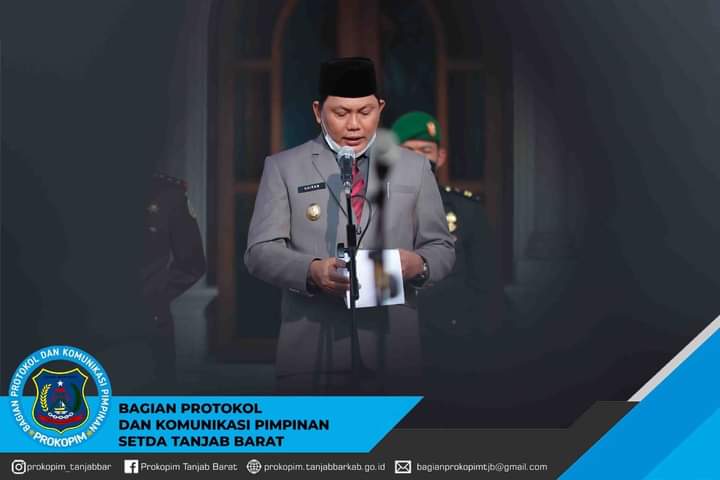 Upacara tersebut berlangsung di halaman Kantor Bupati yang di ikuti oleh unsur frokopimda, staf ahli, asisten, kepala OPD serta ASN di lingkup pemerintah Kabupaten Tanjung Jabung Barat.