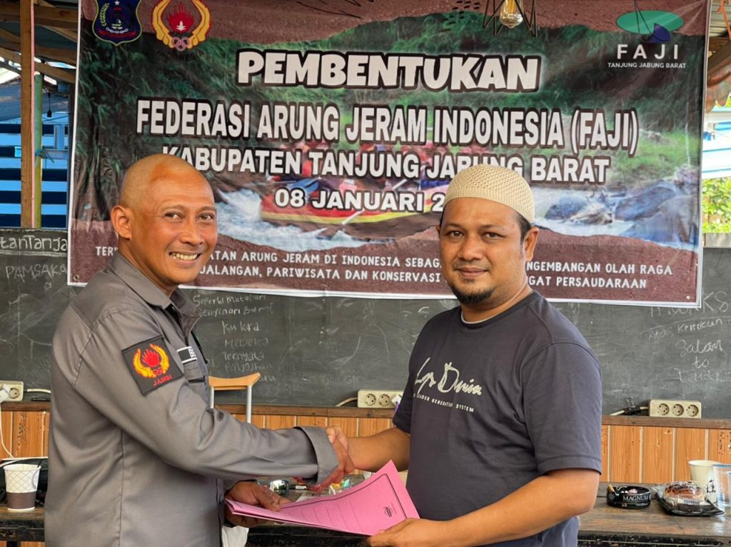 KABARTUNGKAL.COM. TANJABBARAT – Satu lagi Cabang Olahraga (Cabor) hadir meramaikan khasanah dunia olahraga di Tanjung Jabung Barat yakni Cabor Arung jeram. Federasi Arung Jeram Indonesia (FAJI) Kabupaten Tanjung Jabung Barat terbentuk berdasarkan hasil musyawarah yang dilaksanakan di Cafe Kopi Kuale, Rabu (08/01) dan dihadiri oleh Pengurus FAJI Provinsi Jambi, Mapala Pamsaka, Sispala Bumi Pala, TRC BPBD Tanjab Barat dan KPA Tuntas Adventure Community.