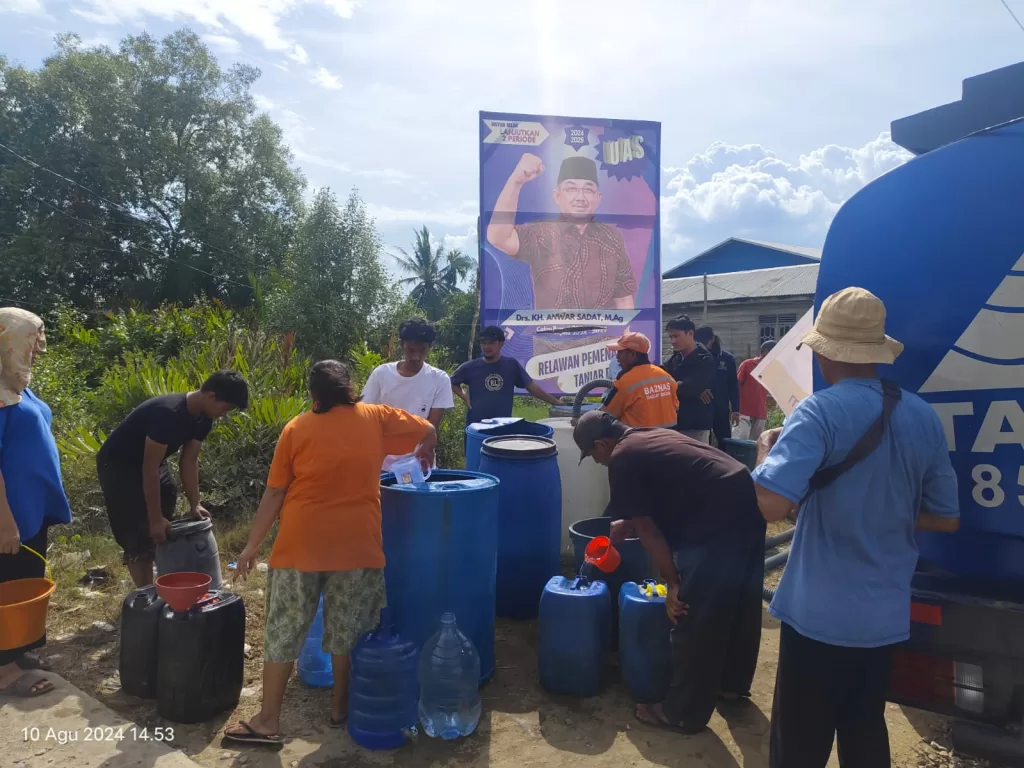 KABARTUNGKAL.COM. Melalui Baznas Kabupaten Tanjung Jabung Barat, Bupati Drs. H. Anwar Sadat, M. Ag menginisiasi penyaluran air bersih untuk masyarakat Kabupaten Tanjung Jabung Barat.