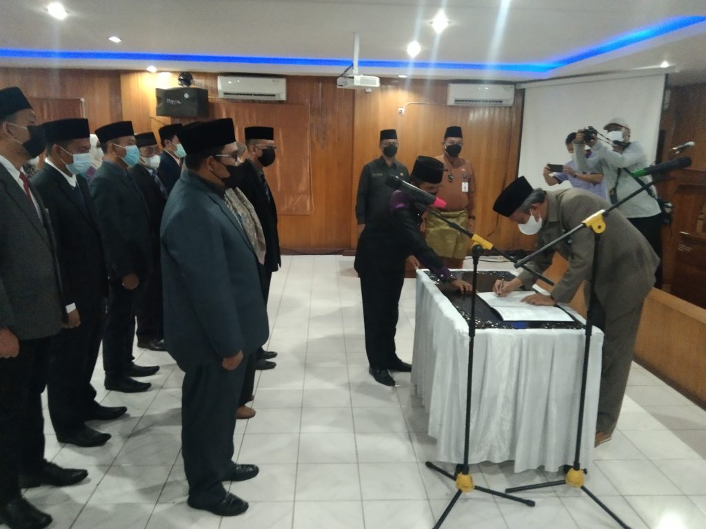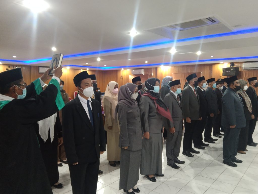 KABARTUNGKAL.COM, Kuala Tungkal – Mewakili Bupati, KH. Drs. Anwar Sadat, M.ag, Sekretaris Daerah (Sekda) melantik 29 orang pejabat struktural eselon III dan IV di lingkungan Pemkab Tanjung Jabung Barat yang bertempat di gedung Pola Kantor Bupati, Senin (4/10/2021)