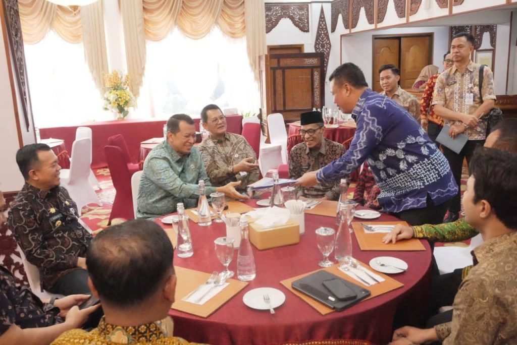 KABARTUNGKAL.COM. Jambi – Wakil Bupati Tanjung Jabung Barat, Dr. H. Katamso S.A., S.E., M.E., menghadiri audiensi bersama Wakil Menteri Pendayagunaan Aparatur Negara dan Reformasi Birokrasi (PAN-RB), Komjen Pol (Purn) Drs. Purwadi Arianto, M.Si., yang berlangsung di Auditorium Rumah Jabatan Gubernur Jambi pada hari Kamis (18/09). Pertemuan ini bertujuan untuk memperkuat peningkatan kualitas pelayanan publik serta pelaksanaan reformasi birokrasi di Provinsi Jambi.