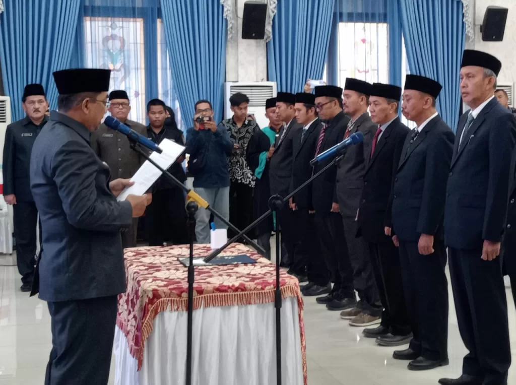 Selain mantan sekda, bupati pun melantik dan mengambil sumpah jabatan sejumlah pejabat Eselon II, III dan IV bersamaan dengan diturunkannya jabatan Agus Sanusi selaku sekda di Rumah Jabatan Bupati, Kamis (1/2/24).