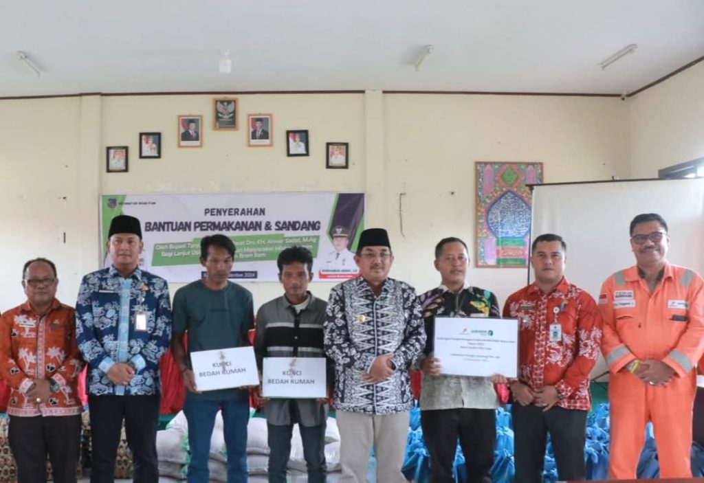 KABARTUNGKAL.COM. Bram Itam – Bupati Tanjung Jabung Barat, Drs. H. Anwar Sadat, M.Ag, berikan solusi nyata terhadap masyarakat dengan memberikan bantuan sosial dan bantuan program bedah rumah untuk warga di Kecamatan Bram Itam, Kamis (12/12).
