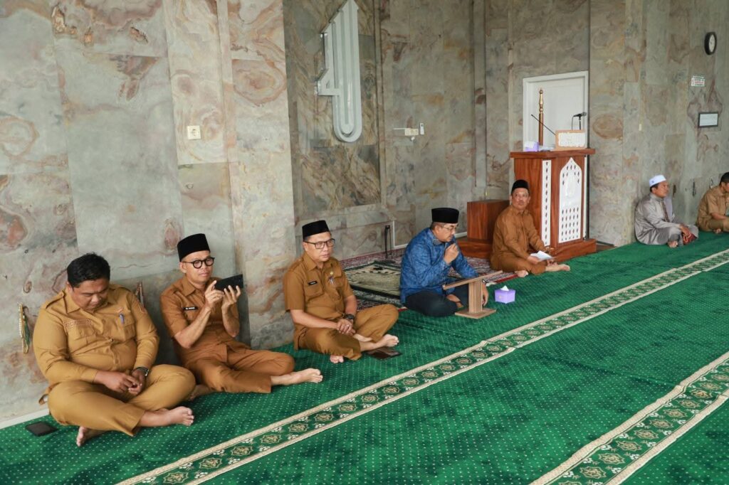 Pengajian Ba’da Zuhur ini dihadiri oleh Asisten Pemerintahan dan Kesra, para Kepala OPD, para Kepala Bagian di lingkup Sekretariat Daerah, pegawai kantor, serta masyarakat sekitar yang antusias mengikuti rangkaian kegiatan keagamaan tersebut.