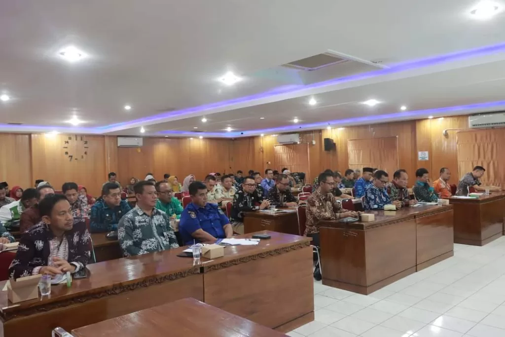 Rapat di Ruang Pola Utama Kantor Bupati dihadiri oleh Sekretaris Daerah, Asisten, Kepala OPD, Kabag di Ruang Lingkup Setda Tanjab Barat, dan tamu undangan lainnya.