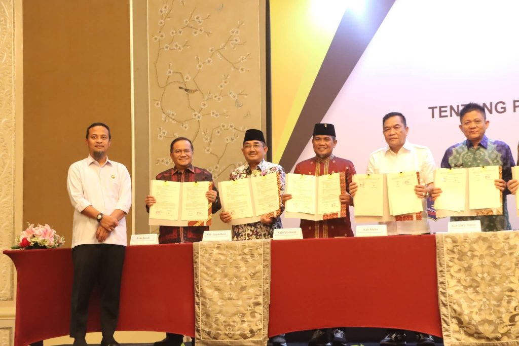 Jakarta – Bupati Tanjung Jabung Barat, Drs. H. Anwar Sadat, M.Ag. menghadiri acara Penandatanganan Nota Kesepahaman (MoU) Bersama Antara Ditjen Migas dengan 15 Pemkab/Pemkot tentang Penyediaan Pendistribusian Gas Bumi Melalui Jaringan Distribusi untuk Rumah Tangga beserta Infrastruktur Pendukungnya, di Hotel Shangri-la Jakarta, Kamis (18/9).
