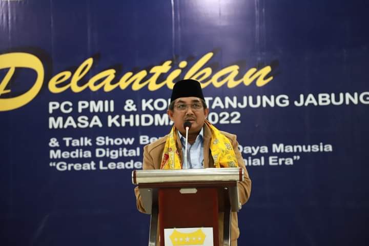 KABARTUNGKAL.COM . Bupati KH. Drs. Anwar Sadat, M.ag Hadiri acara pelantikan PC PMII dan KOPRI Tanjung Jabung Barat ke – X masa hidmat 2022 sekaligus Talkshow bertemakan media digital dan Sumber Daya Manusia “Great Leaders The Millenial Era”. Selasa,( 1/2/22)