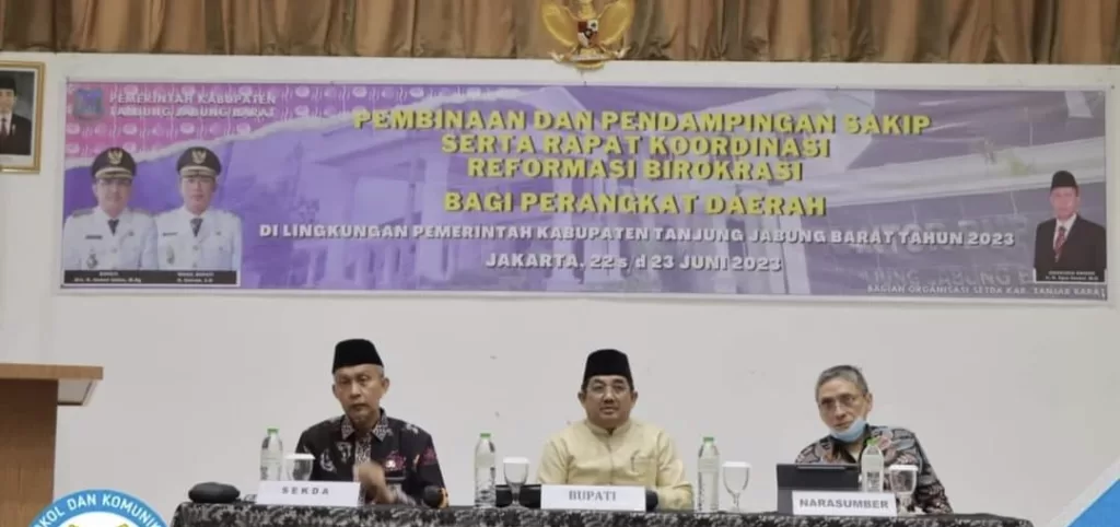 KABARTUNGKAL.COM. JAKARTA. Bupati Tanjung Jabung Barat Drs. H. Anwar Sadat, M.Ag membuka secara resmi kegiatan Pembinaan dan Pendampingan Sistem Akuntabilitas Kinerja Instansi Pemerintah (SAKIP) serta Rapat Koordinasi Pelaksanaan Reformasi Birokrasi (RB) bagi perangkat daerah di Lingkungan Pemerintah Kabupaten Tanjung Jabung Barat Tahun 2023 yang dilaksanakan di Hotel 101 Urban Jakarta, Kamis (22/06/23).