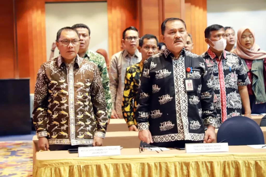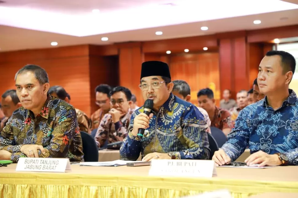 Bupati Tanjab Barat didampingi oleh Pj. Sekretaris Daerah Tanjab Barat, Kepala Bapedda, Asisten Pemerintahan dan Kesra, Kepala Dinas PU, Kepala Dinas Lingkungan Hidup, Kepala DPMTSP, dan Kepala Dishub. Rapat juga dihadiri oleh perwakilan dari Dinas dan Instansi terkait dari tiap Provinsi.