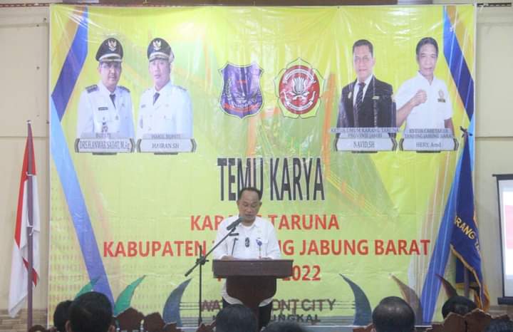 KABARTUNGKAL.COM . Mewakili Bupati Kabupaten Tanjung Jabung Barat Asisten Administrasi Umum Jeter Simamora, S.IP Menghadiri Sekaligus Membuka Secara Resmi Acara Temu Karya Daerah (TKD) Karang Taruna Kabupaten Tanjung Jabung Barat Tahun 2022, Rabu(19/01).