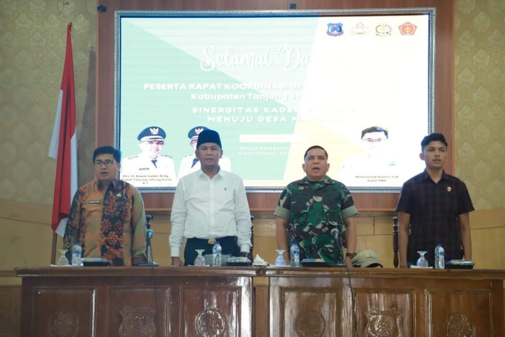 Rakor yang berlangsung di Balai Pertemuan Kantor Bupati, dihadiri oleh perwakilan unsur Forkopimda, Kepala Dinas PMD, para Camat, Kepala Desa dan BPD se-Kabupaten Tanjung Jabung Barat.