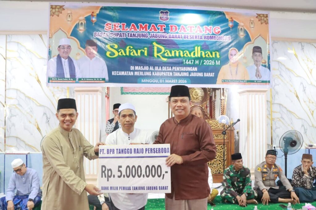 TANJAB BARAT – Pemerintah Kabupaten Tanjung Jabung Barat menggelar Safari Ramadan di Masjid Al-ULA, Desa Penyabungan, Kecamatan Merlung, Minggu (01/03). Kegiatan ini menjadi ajang silaturahmi sekaligus penyampaian program pembangunan kepada masyarakat.
