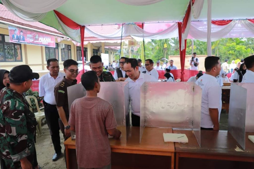 KABARTUNGKAL.COM. Bram Itam — Penjabat Sementara (Pjs.) Bupati Tanjung Jabung Barat, dr. H. MHD. Fery Kusnadi, Sp.OG, mengikuti kegiatan Simulasi Pemungutan dan Penghitungan Suara dalam Pemilihan Gubernur dan Wakil Gubernur Jambi serta Bupati dan Wakil Bupati Tanjung Jabung Barat tahun 2024. Kegiatan ini berlangsung di halaman Kantor Camat Bram Itam. Senin (11/11).