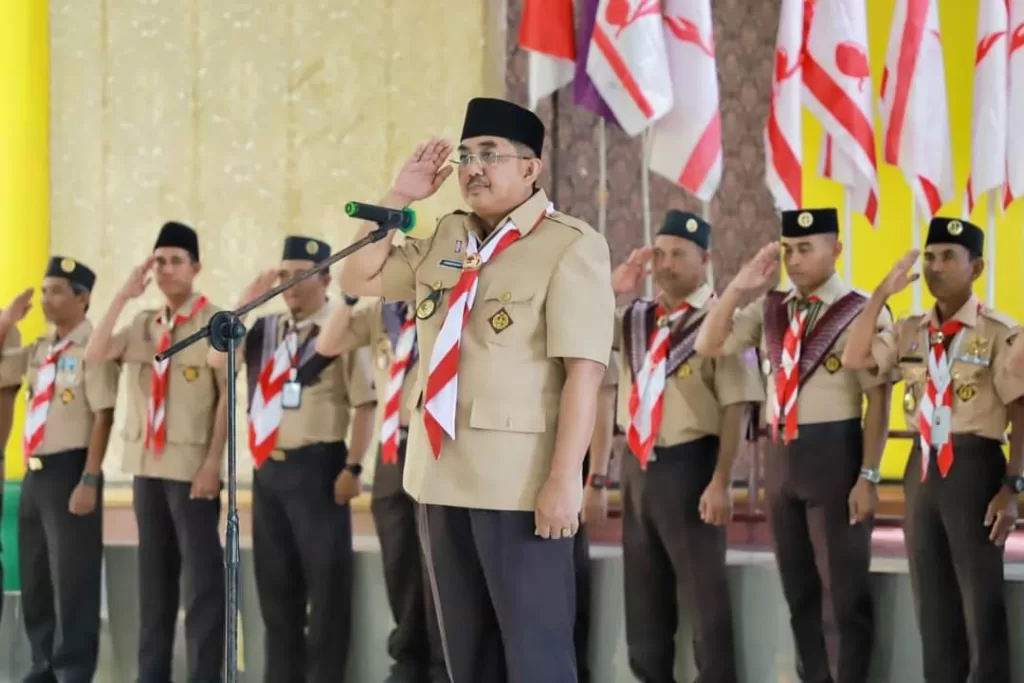 KABARTUNGKAL.COM. Kuala Tungkal – Bupati Tanjab Barat, Drs. H. Anwar Sadat, M.Ag, resmi membuka Gladian Pimpinan Satuan Penegak (Dianpinsat) Kwartir Cabang Gerakan Pramuka Tanjung Jabung Barat Tahun 2024, Jum’at (26/7/2024). Kegiatan yang berlangsung selama empat hari, 26-29 Juli, di Balai Adat Melayu Tanjab Barat ini bertujuan untuk mencetak kader Pramuka yang berkualitas dan siap memimpin di tingkat satuan.
