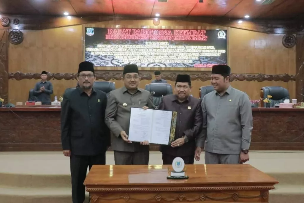 Bupati Tanjab Barat Drs. H. Anwar Sadat, M. Ag dalam sambutannya menyampaikan bahwa dengan disetujuinya Rancangan Peraturan Daerah untuk disahkan peraturan Daerah. Berarti telah mencatat peristiwa penting dalam memegang amanah rakyat untuk menjalankan roda pemerintahan .