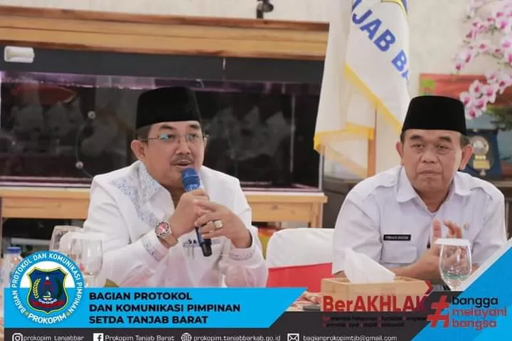 Kegiatan yang diikuti secara virtual dari Rumah Jabatan Bupati ini, turut dihadiri oleh Kapolres Tanjab Barat/mewakili, Dandim 0419/Tanjab/mewakili, Kasi Datun Kejari Tanjab Barat, Asisten, Kepala OPD terkait serta Instansi Vertikal terkait, Kabag Ekonomi, dan undangan lainnya.