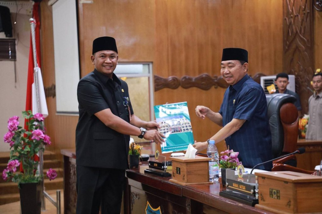 KABARTUNGKAL.COM. Mewakili Bupati Tanjung Jabung Barat, Sekretaris Daerah Hermansyah, S.STP., M.H., menghadiri Rapat Paripurna Pertama DPRD Kabupaten Tanjung Jabung Barat dengan agenda penyampaian Nota Pengantar Rancangan Peraturan Daerah tentang APBD Tahun Anggaran 2026. Senin (8/9).