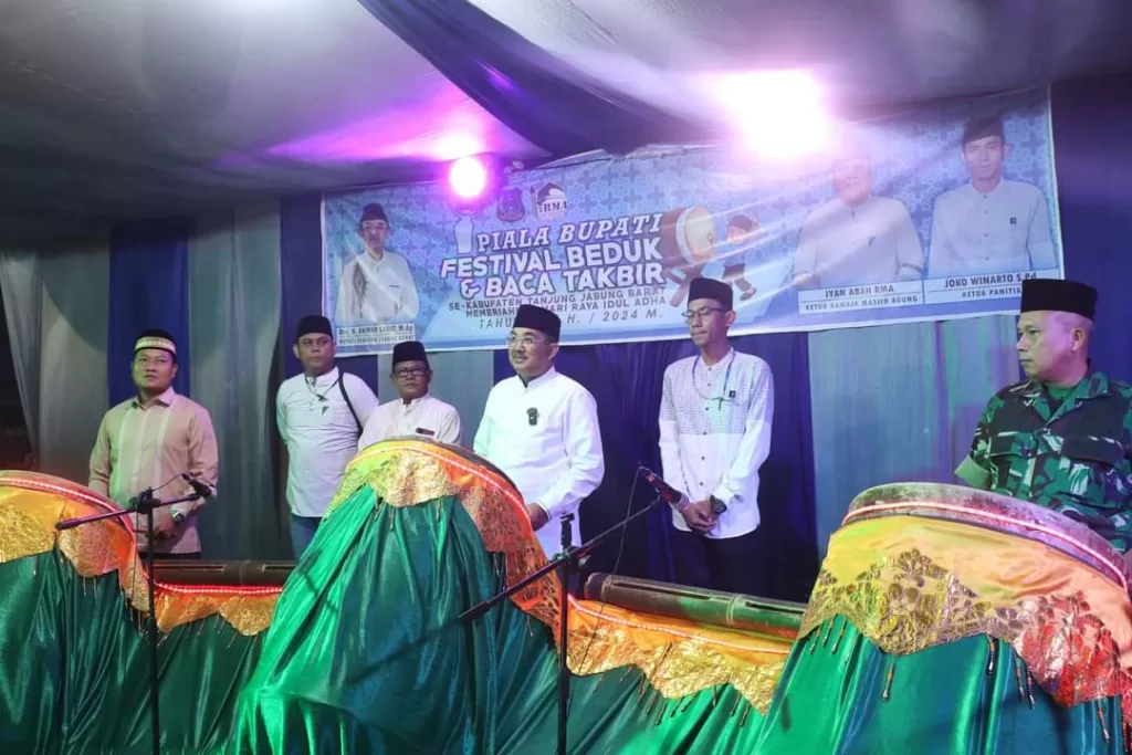Festival yang berlangsung selama tiga hari, mulai tanggal 18 hingga 20 Juni 2024, ini diikuti oleh 17 peserta dari berbagai remaja masjid, majelis pengajian, dan sanggar pemuda se-Tanjab Barat. Mereka berlomba menunjukkan bakat dan kreativitas dalam memainkan beduk dan melantunkan takbir, memperebutkan Piala Bupati, dengan total hadiah sebesar 10 juta rupiah.