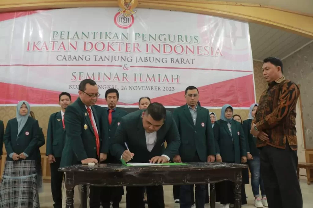 IDI Cabang Kabupaten Tanjung Jabung Barat ini memiliki peran sentral dalam mengemban tugas tersebut. Pengurus yang baru dilantik hari ini menjadi garda terdepan dalam menjawab tantangan di era 4.0 melihat bagaimana peran dokter yang menjadi landasan utama untuk mencapai tujuan tersebut,” ucapnya.