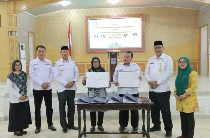KABARTUNGKAL.COM. Wakil Bupati Tanjung Jabung Barat H. Hairan, SH menyambut langsung kunjungan dari Pemerintah Kabupaten Indragiri Hilir dalam rangka silaturahmi dan penandatanganan Perjanjian Kerjasama antara beberapa Perangkat Daerah yang ada di Kabupaten Tanjung Jabung Barat. Rabu (08/02/23).