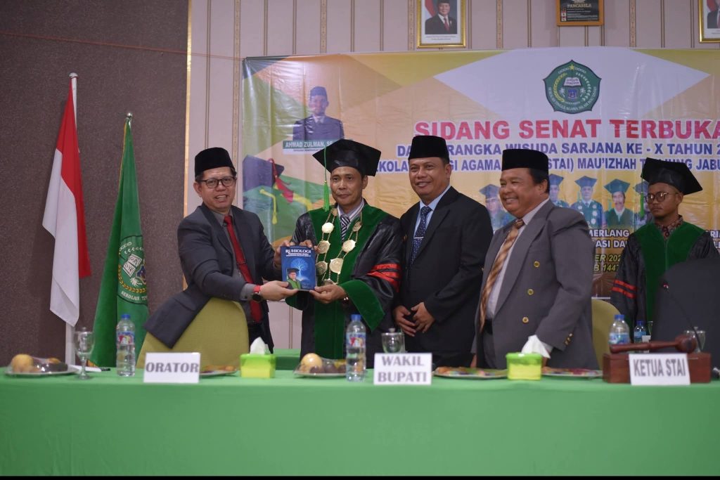 Acara ini turut dihadiri oleh Sekretaris Kopertais Wilayah XIII Provinsi Jambi, Dr. H. Jamrijal, M.Pd.I, Guru Besar UIN Sulthan Thaha Saifuddin Jambi, Prof. Iskandar, Ph.D, yang menyampaikan orasi ilmiah, Ketua Yayasan Al Mau’izzah, Camat Muarapapalik, serta anggota DPRD Tanjung Jabung Barat, Ishak.