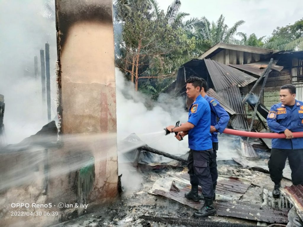 KABARTUNGKAL.COM . Satu unit rumah , mobil truk juga motor milik warga Dusun Mudo, Kec. Muara Papalik Kabupaten Tanjung Jabung Barat hangus di lalap si jago merah. Sabtu (30 April 2022) Pagi