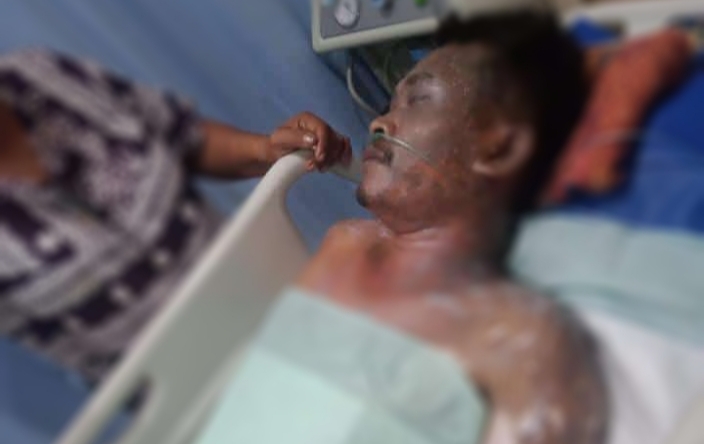 KABARTUNGKAL.COM. Sungguh malang nasib bapak Daimanus Keron warga Jl. Majaphit RT. 04 Payo Selincah yang saat ini terbaring lemah di Rumah Sakit Dr. Bratanata Jambi (DKT ). Dimana sekujur tubuhnya terkena luka bakar akibat minyak panas sebagaimana yang di sampaikan adek kandungnya kepada awak media online kabartungkal.com Rabu, ( 3/11/21).