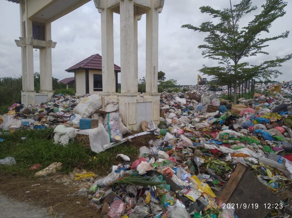 Kondisi tersebut diduga karena tidak adanya pengelolaan yang baik dari pihak penanggung jawab, yaitu DLH Tanjab Barat ,serta alat berat Excavator dan Buldozer yang lama tidak beroperasi, sehingga menyebabkan sampah menjadi menggunung dan berserakan bahkan menutupi badan jalan di TPA itu.