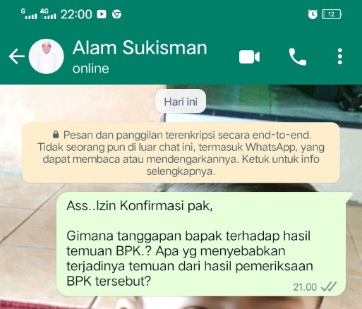 Saat awak media ini melontarkan pertanyaan melalui pesan WhatsApp ke Dewan Pengawas Rumah Sakit Umum Daerah Tanjung Jabung Barat, Alam Sukesman mengenai tanggapan temuan BPK itu, dan Sekertaris Daerah (Sekda) Ir. H. Agus Sanusi, M.Si, kedua-duanya memilih diam seribu bahasa (bungkam) padahal status WhatsApp-nya online.