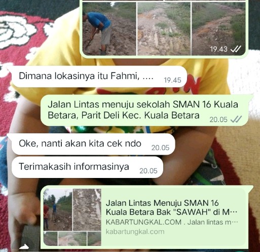“Dapil sini ada Dedi Hadi, Arfin Siregar, H. Abdullah (Ketua DPRD) saat ini, Arahab dan mungkin ada yang lainnya, harusnya sedari dulu memikirkan jalan ini. Bukan haya suara masyarakat saja yang di pinta tapi pikirkan keinginan rakyat”. Cetus Pak Sudiro kepada awak media KABARTUNGKAL.COM dengan nada penuh kekecewaan.