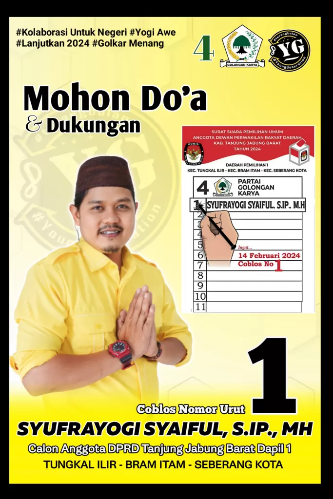 Perlu diketahui, Penanggung Jawab Penuh Pemenangan Prabowo-Gibran di Wilayah Kabupaten Tanjung Jabung Barat yakni politisi muda partai Golongan Karya (GOLKAR), Suprayogi Syiful, S.IP, MH yang saat ini tengah menjabat sebagai Ketua Komisi II DPRD Kabupaten Tanjung Jabung Barat. (Red/Ad/Fz)